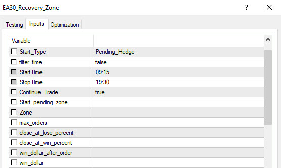 ملاحظة : يجب ايقاف الاكسبرت عن فتح صفقة جديدة يوم الجمعة مثلا لان السوق قد يفتح على جاب قوي ويكون غير معمول حسابه فتغلق الصفقات على خسارة, و الاعدادات الافتراضية للاكسبرت ليست هي افضل الاعدادات ويجب عليك العمل بها على الباك تست لتحديد افضل الاعدادات التي تناسب استراتيجيتك مثلا هناك من يحب استخدامها وقت الاخبار وهنا بيكون الزون والاهداف متوسطة ومن يعمل بها مع استراتيجيتك الخاصة حفاظا على انعكاس السوق عليه بيكون الزون والاهداف بعيدة وهكذا تختلف الاعدادات حسب فكر وطريقة كل شخص في التجارة.